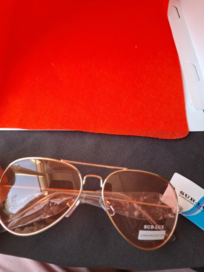 Lunettes de soleil Sur-Lux neuves avec étiquettes protection 400 CE. Verres roses