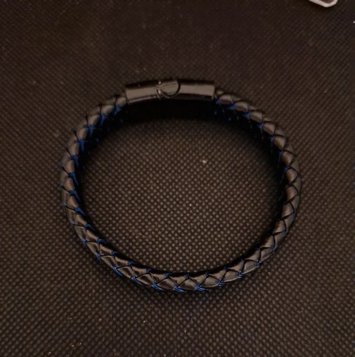 Bracelet acier inoxydable et cuir .neuf avec etiquette pour hommes. - photo numéro 3
