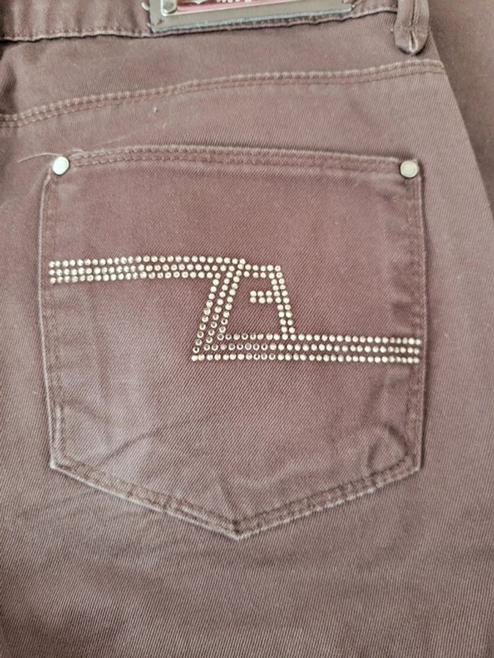 Jeans pantalon marron Zara Woman paillettes strass premium denim taille S 36 - photo numéro 3