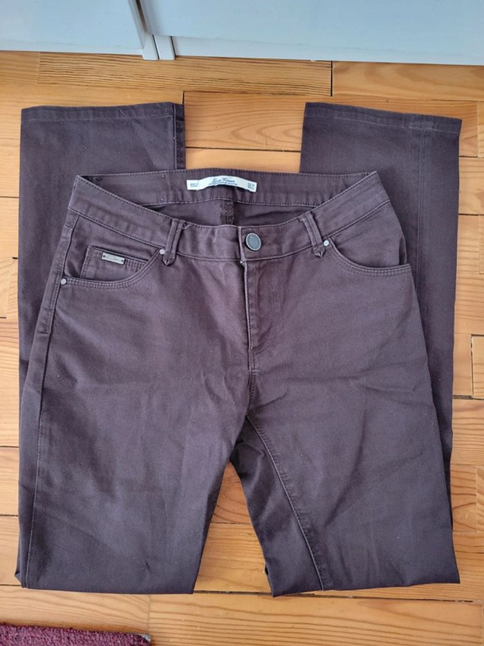 Jeans pantalon marron Zara Woman paillettes strass premium denim taille S 36 - photo numéro 10