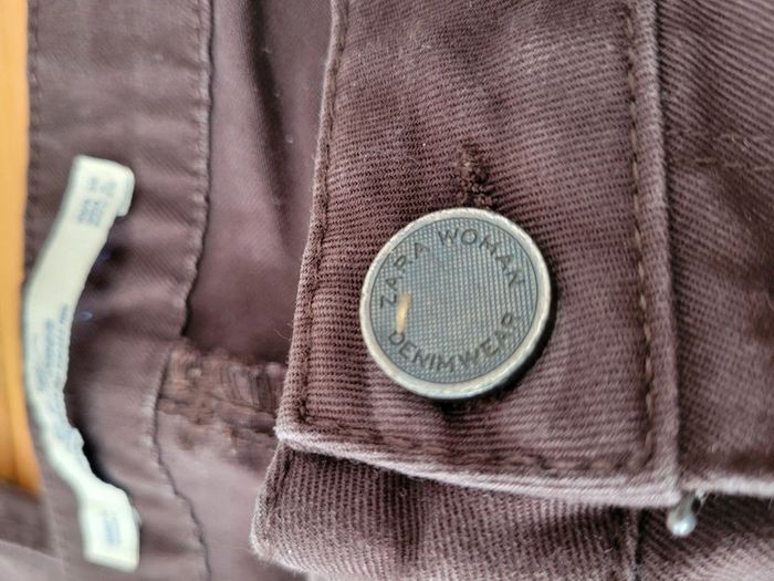 Jeans pantalon marron Zara Woman paillettes strass premium denim taille S 36 - photo numéro 4