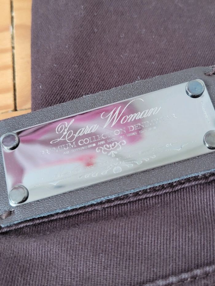 Jeans pantalon marron Zara Woman paillettes strass premium denim taille S 36 - photo numéro 9