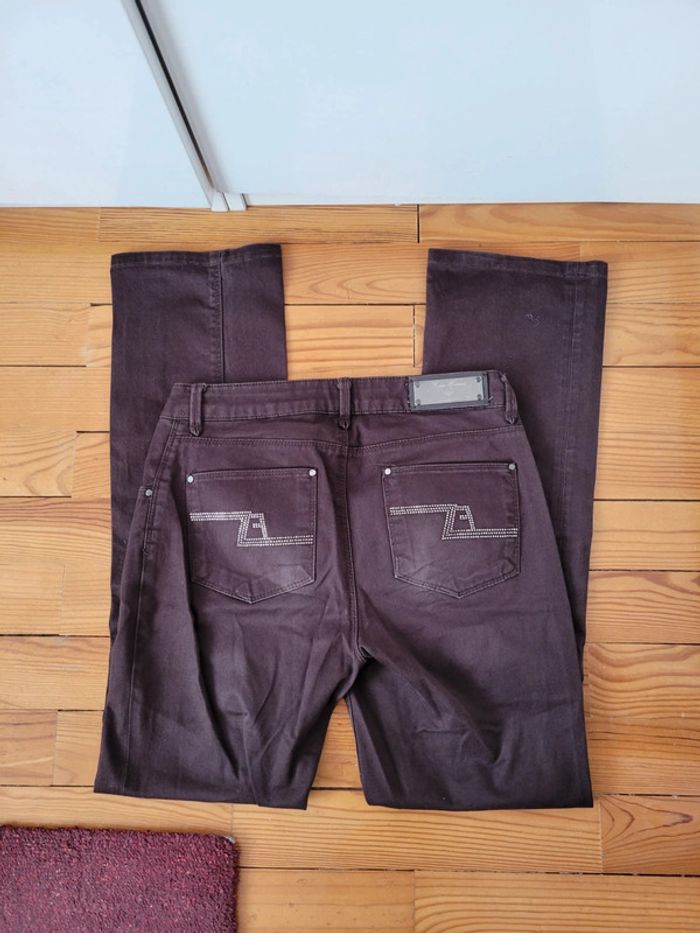 Jeans pantalon marron Zara Woman paillettes strass premium denim taille S 36 - photo numéro 7