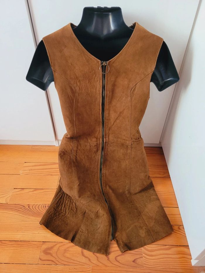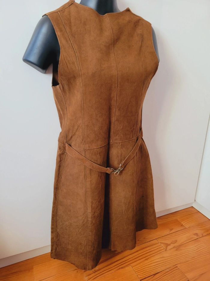 Robe ancienne vintage 100% cuir de veau taille M 38 années 70 - photo numéro 1