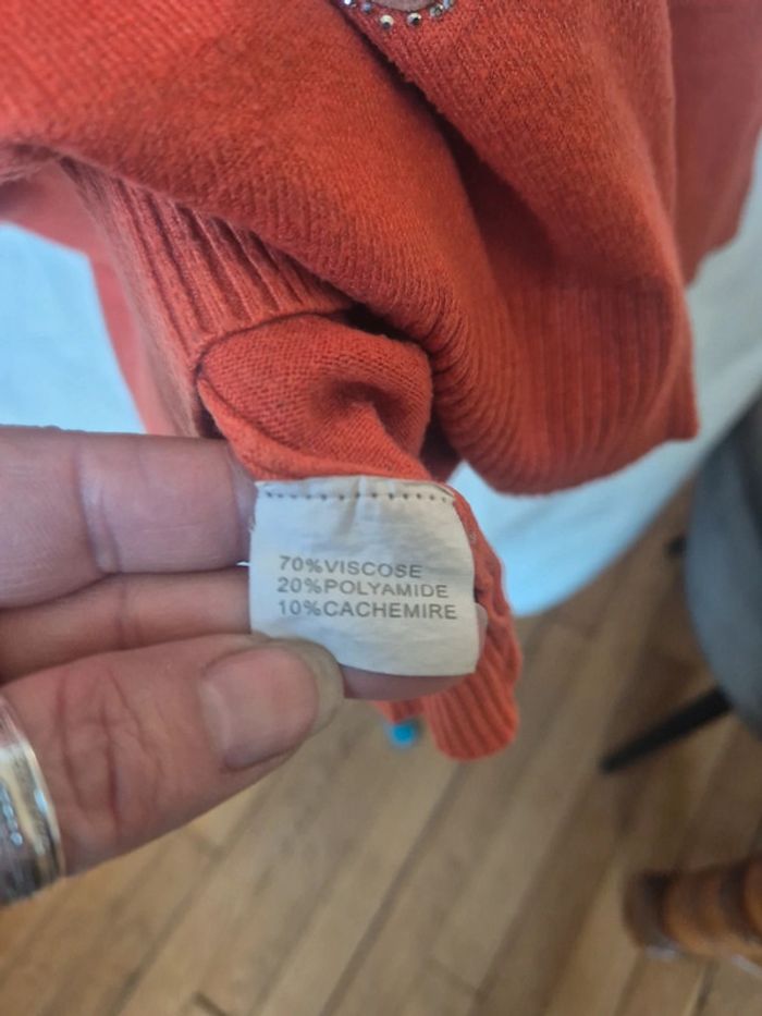 pull orangé avec motif et strass - photo numéro 6
