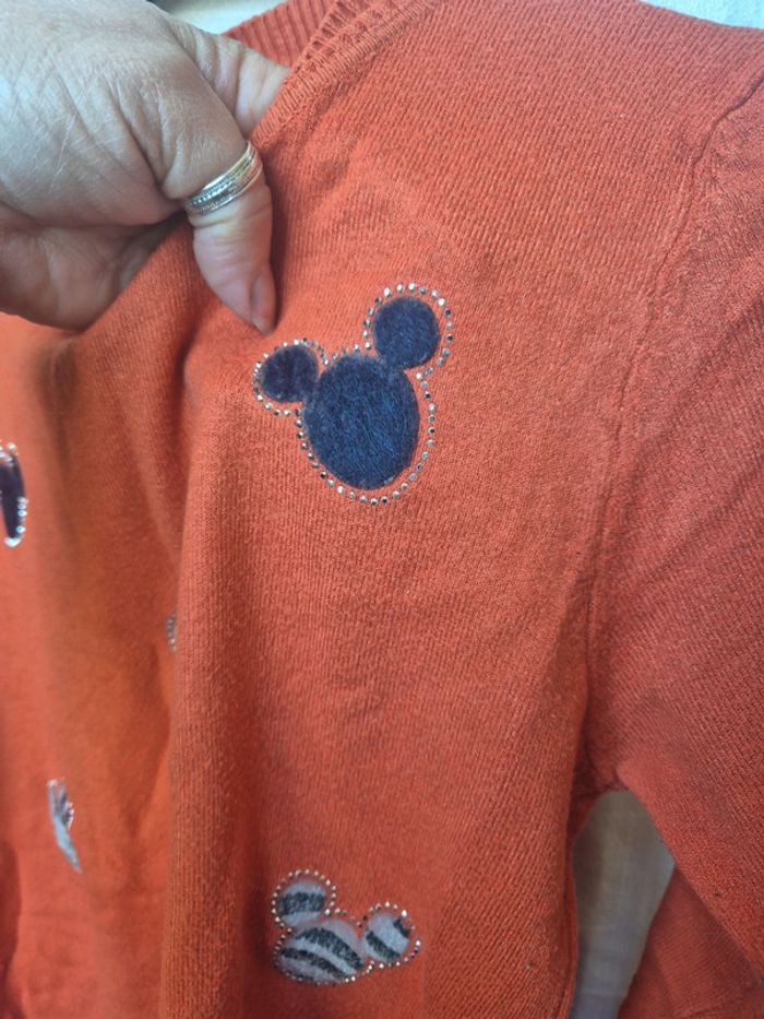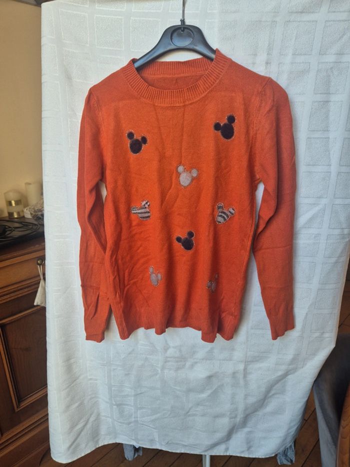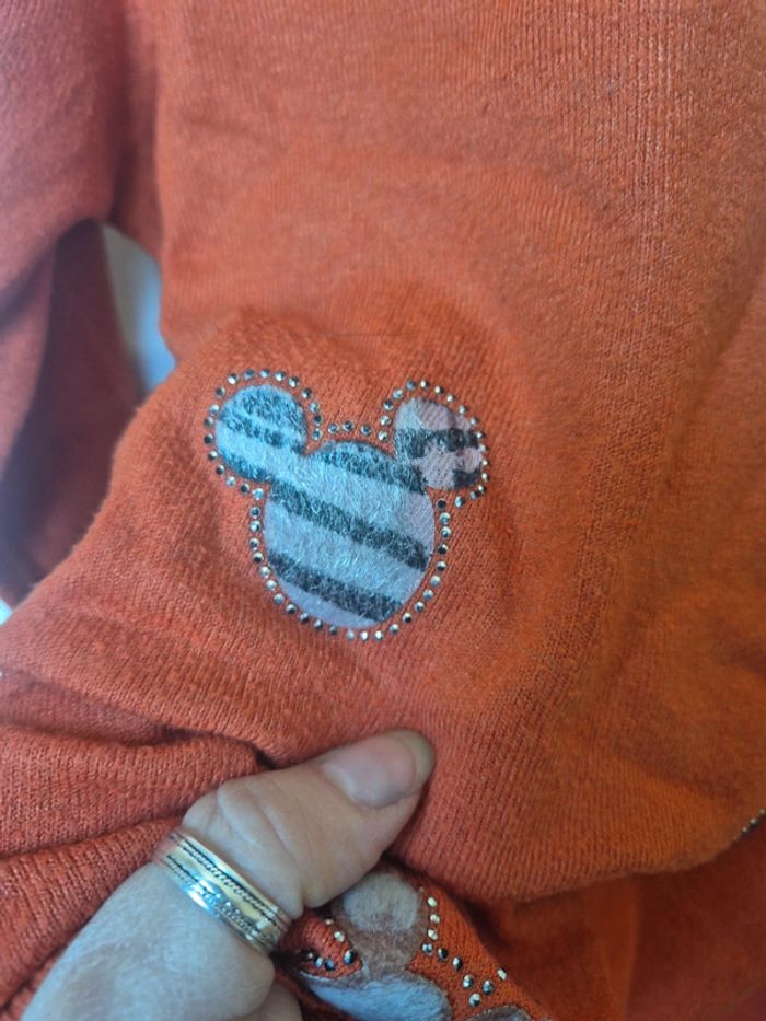 ⬇️mes autres annonces pour femme en taille 40 👉 #cg89femme40 😁 réductions activées des 2 articles ! un pull orangé avec des motifs en forme de tete de mickey (plus ou moins duveteux), ils sont entourés de petits strass. il mesure 39 cm aux epaules, 43 cm aux aisselles et 62 cm de longueur. composition : polyamide, viscose et cachemire bon état - taille 40 #pull #strass #mickey #taille40 #haut #femme #cashmere
