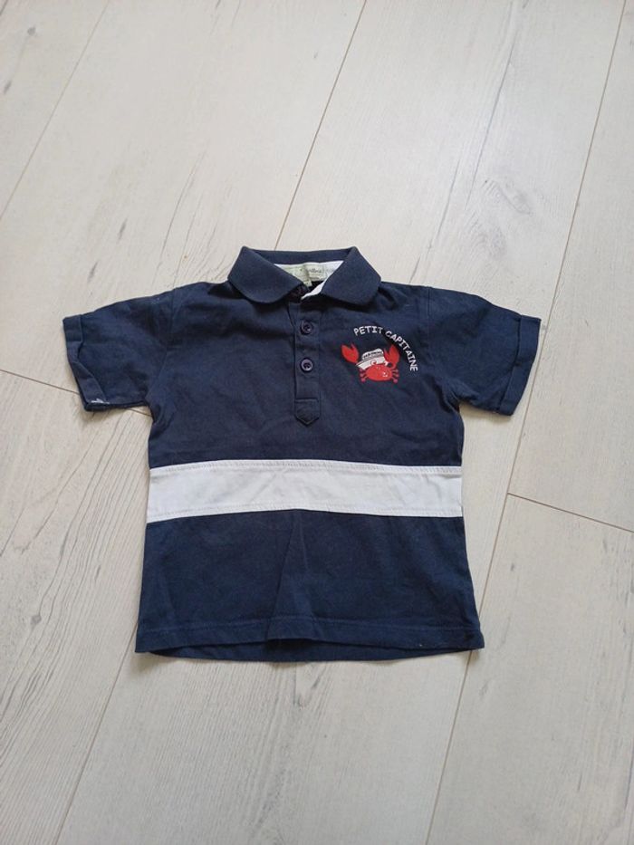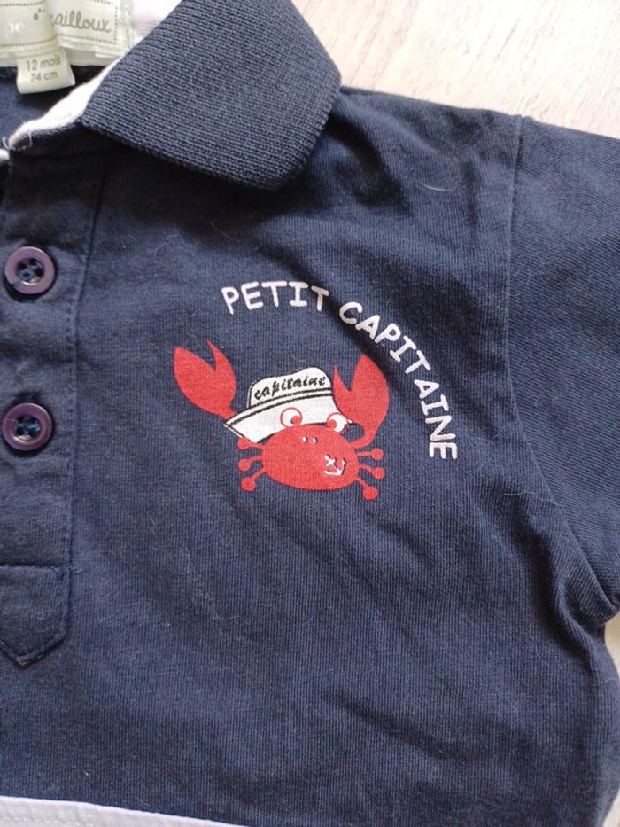 Polo bleu marine avec bande blanche et motif un crabe 12 mois Mes petits cailloux Très bon état #12mois #12moisgarçon #12moislexou_77 #mespetitscailloux12moisgarçon