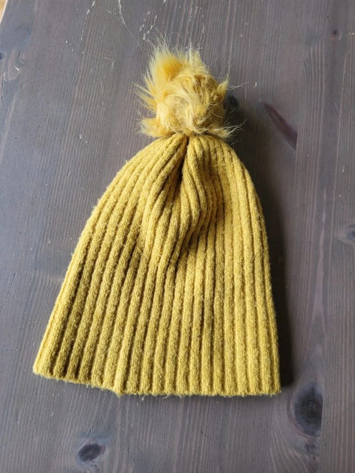 Bonnet jaune moutarde à pompon La Halle - photo numéro 1