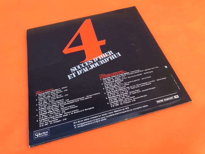Vinyle 33 tours Succès d' hier et d' aujourd' hui N°4 Adamo et Anthony La fantaisie d' Annie Cordy et le charme de Sacha Distel Sélection Reader Digest's