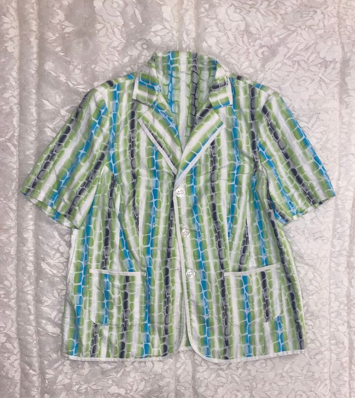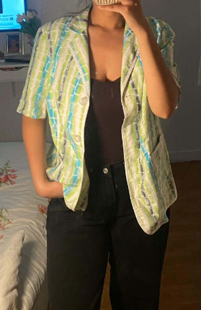 Blazer vintage imprimé vert & bleu - photo numéro 1