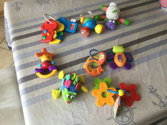 Lot de divers jouets d’éveil pour bébé, ayant déjà servi mais en bon état