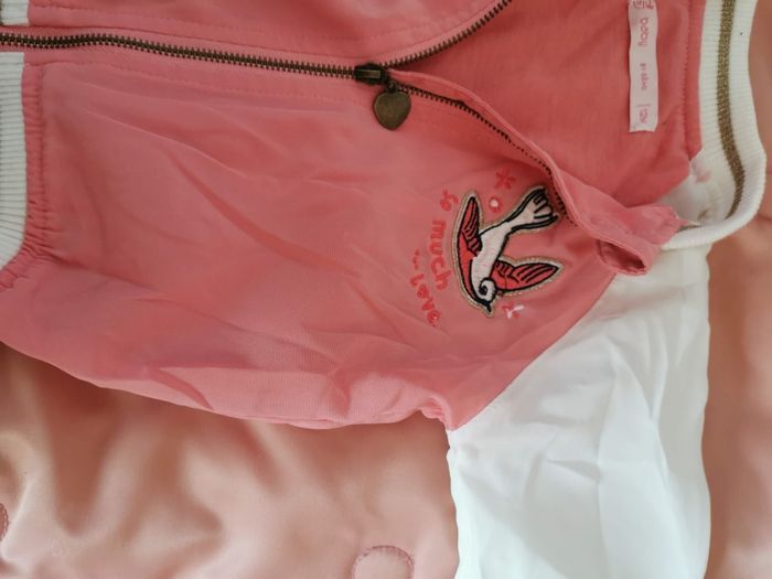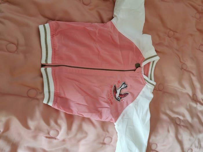 Veste rose et blanche peu portée avec un oiseau dessus