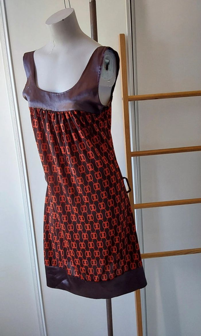 Robe polyester et satin marron orange rétro vintage T 38 - photo numéro 2