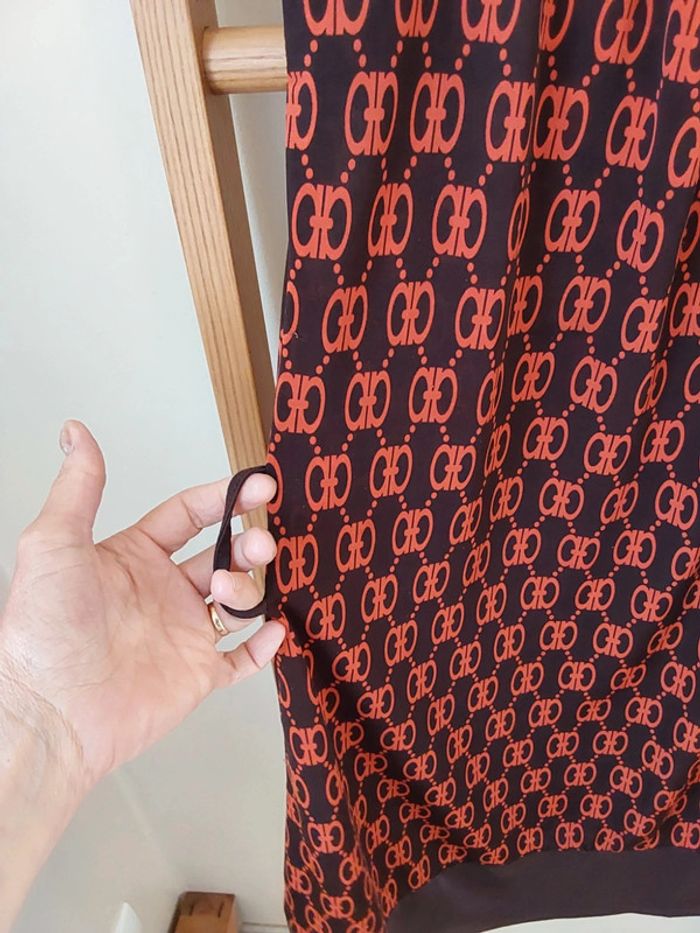 Robe polyester et satin marron orange rétro vintage T 38 - photo numéro 7