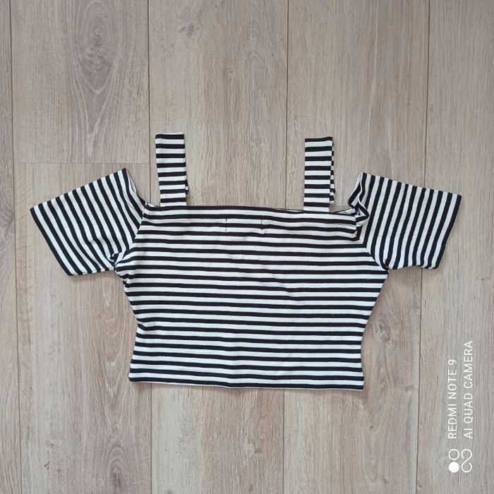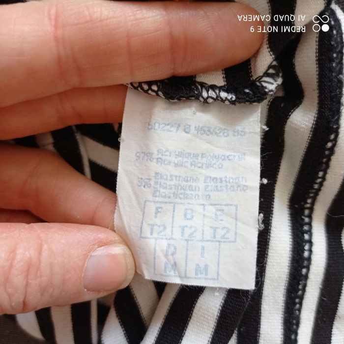 Rayures horizontales. Acrylique, élasthane. Jolies bretelles type salopette. Taille petit. C16
