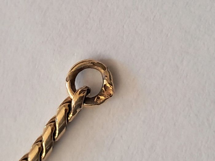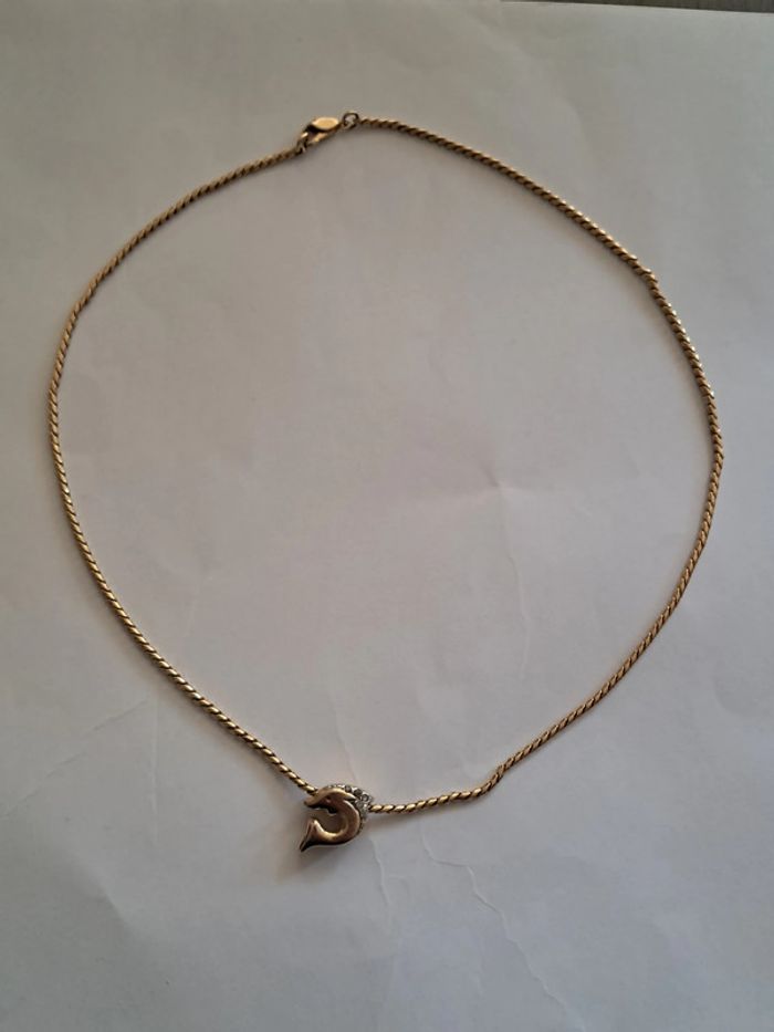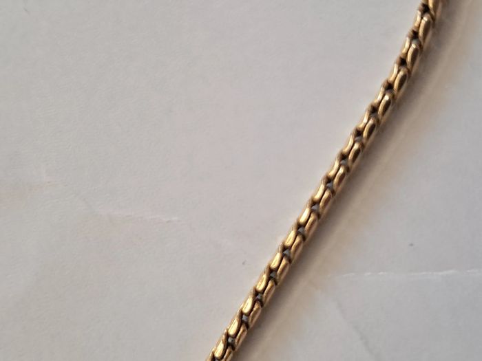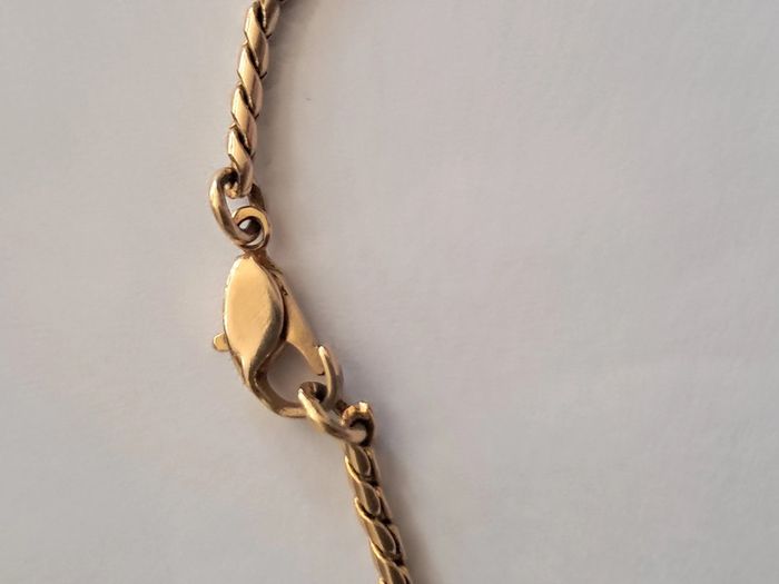 Poinçon. Plaqué or jaune et blanc. Petits strass ou pierres blanches. Longueur 46 cm.