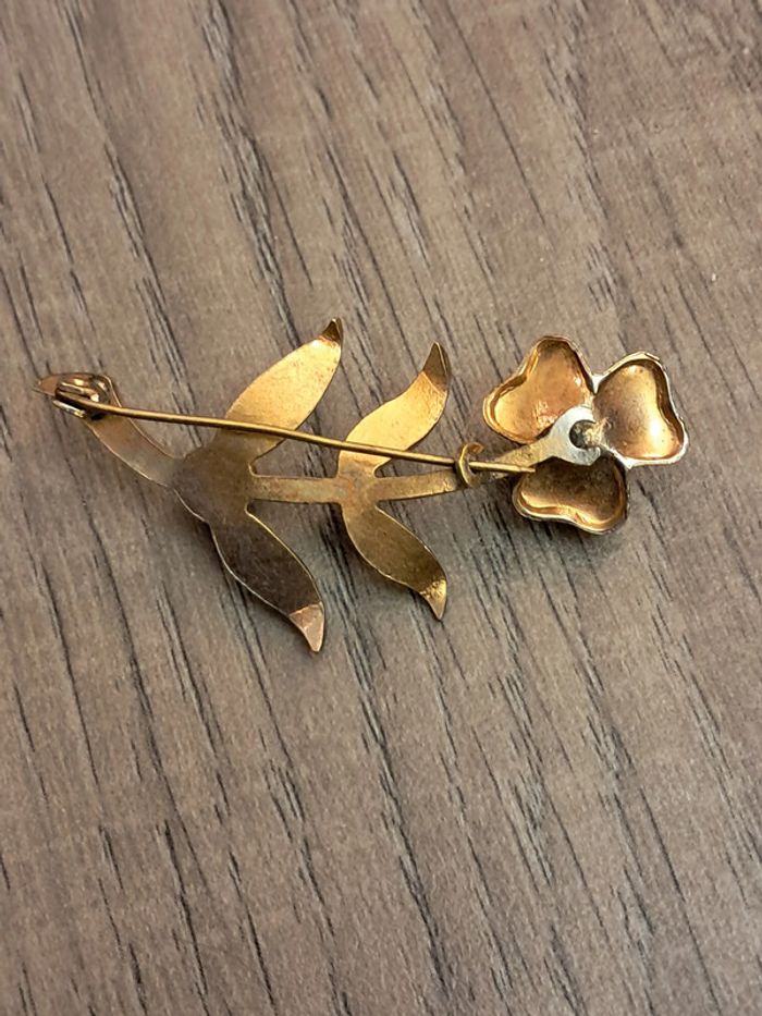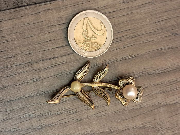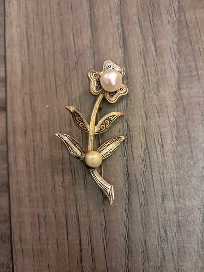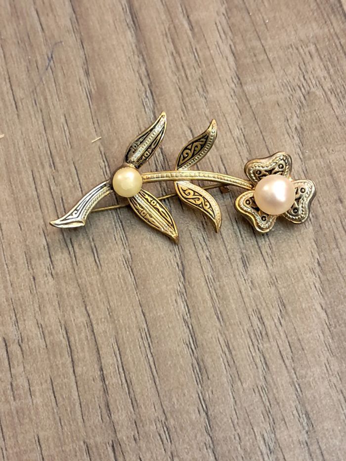 Branche fleurie. Metal doré et noir et perles fantaisies