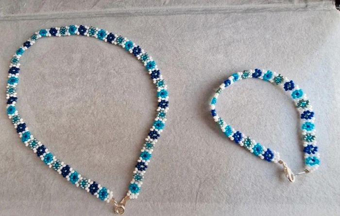 Parure collier + bracelet dégradé de bleu - photo numéro 1