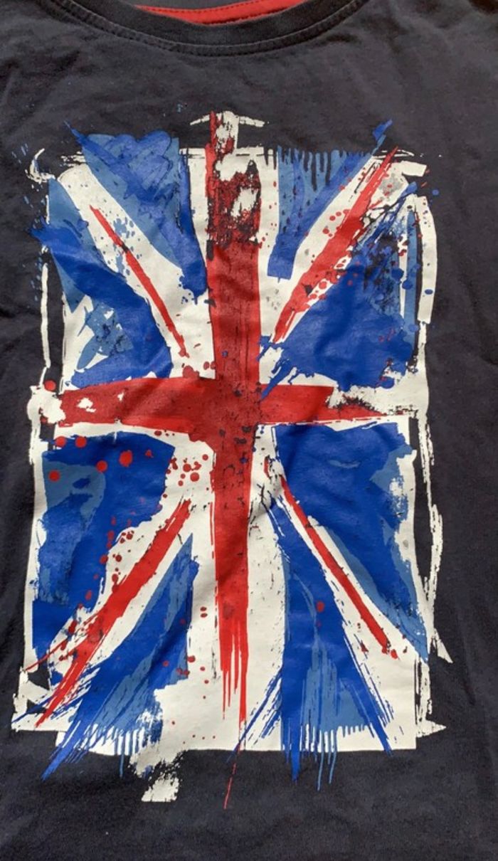 le dessin du drapeau est un peu abîmé (cf photo) bien porté Taille 4-5 ans