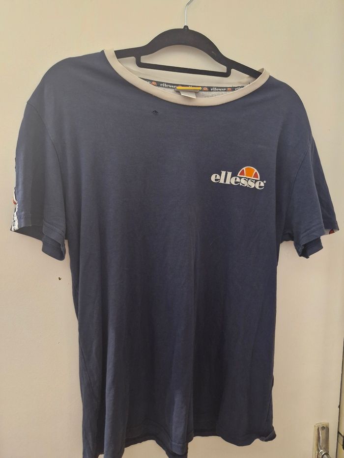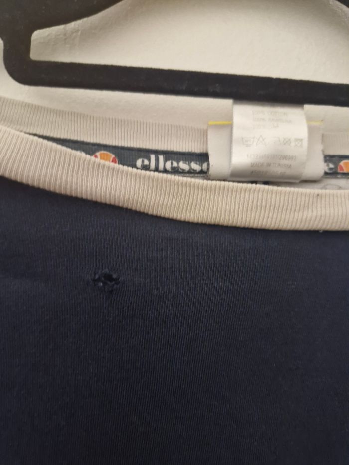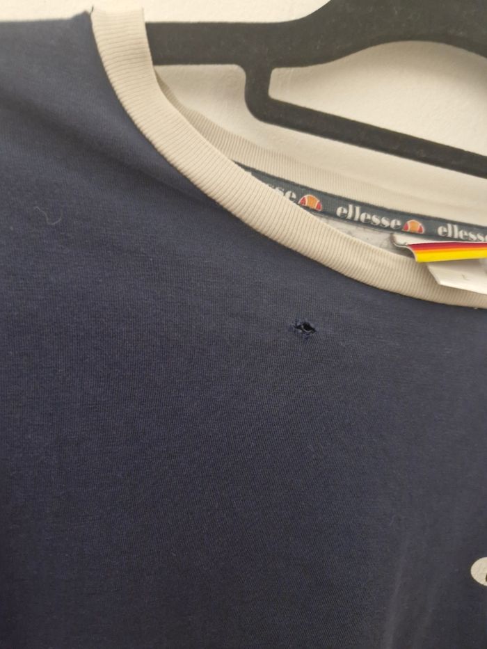 T-shirt homme taille L ,petit trou voir photo Logo de la marque sur tous le tour de cou à interieur du t-shirt. Logo en bande à la manche de chaque côté . Logo et inscription sur le torse du tshirt ainsi que etiquette avec la marque . n'ai plus le ticket caisse ou la facture. Voir toutes les photos Malgré le défaut reste en excellent etat