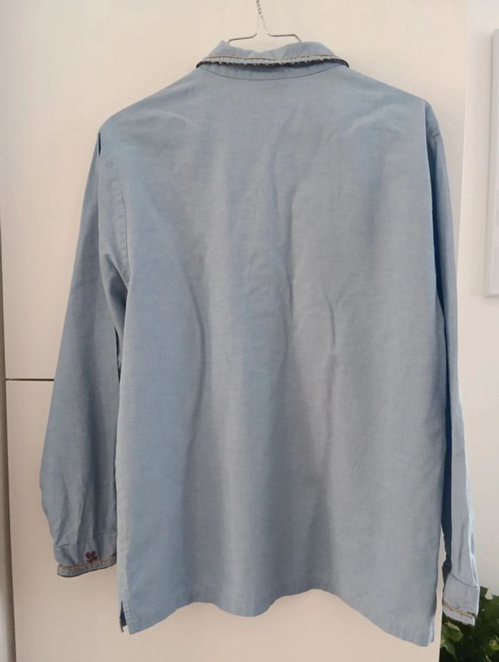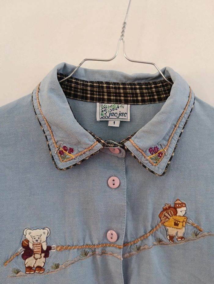 Chemise vintage Jac Jac Taille 1 Broderies sur le poitrine. Bleu Chambray 100% coton Taille 38 estimée à confirmer avec les mesures Mesures Épaules 44cm Aisselles 49cm Longueur 68cm