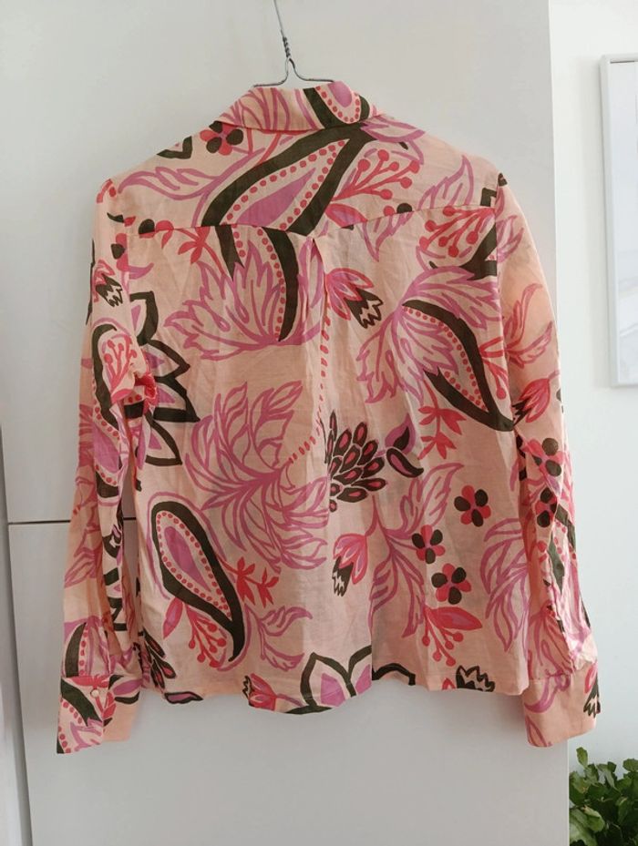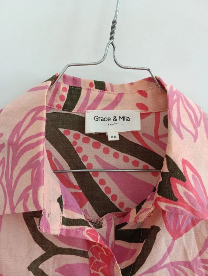 Chemise en coton à fleurs roses Manches longues, Modèle Marica de Grace & Mila Taille XS 100% coton Mesures Epaules 36cm Aisselles 49cm Longueur 57cm