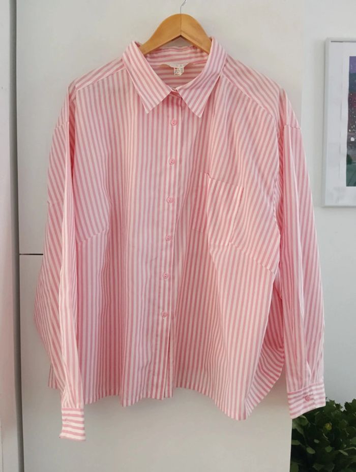 Chemise vintage à rayures roses manches longues - photo numéro 1