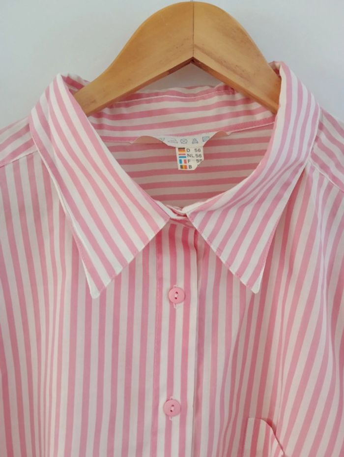 Chemise vintage à rayures roses manches longues . A porter oversize ou plus ajustée,bien vérifier les mesures selon l'effet souhaité. Taille indiquée 58 à confirmer avec les mesures Mesures Epaules 59cm Aisselles 72cm Longueur 71cm