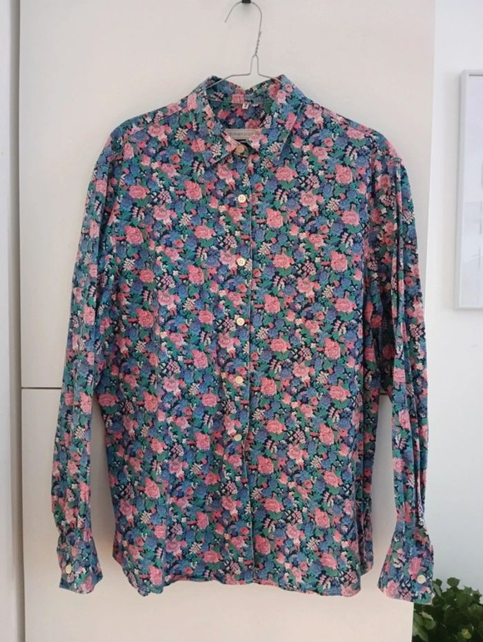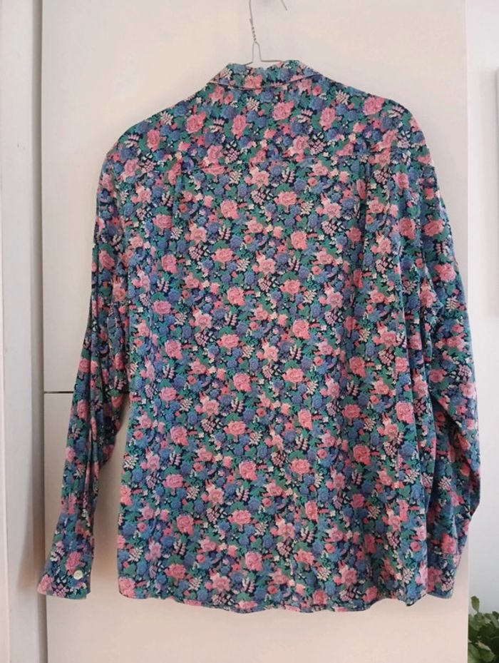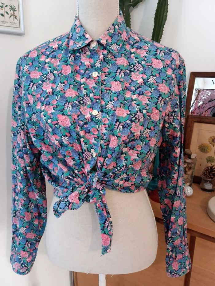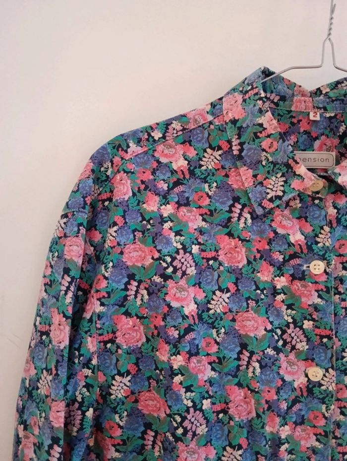 Chemise vintage à manches longues fleurie Taille 2 indiquée, taille 40 estimée à confirmer avec les mesures Epaules 45cm Aisselles 55cm Longueur 70cm