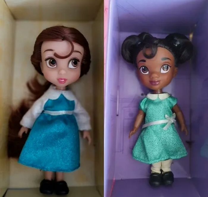 ☆ Non négociable. ☆ 2 poupées mini-Animators Belle et Tiana, vendues en lot. Poupées Disney de collection neuves pour 35€ les 2. Neuves, soigneusement envoyées et protégées. Envoi rapide et soigné :)