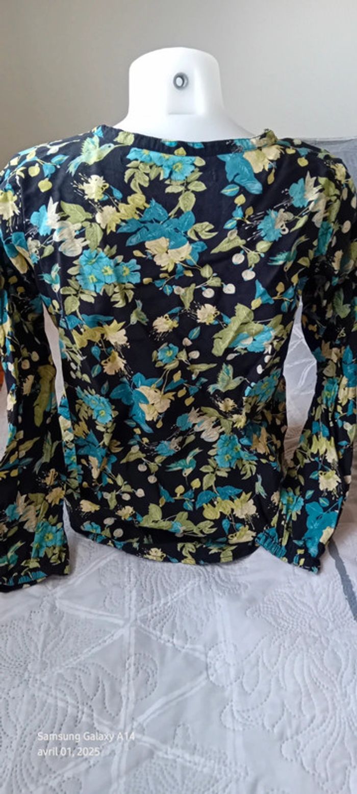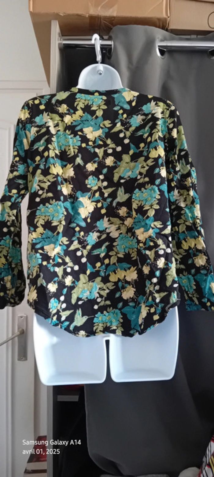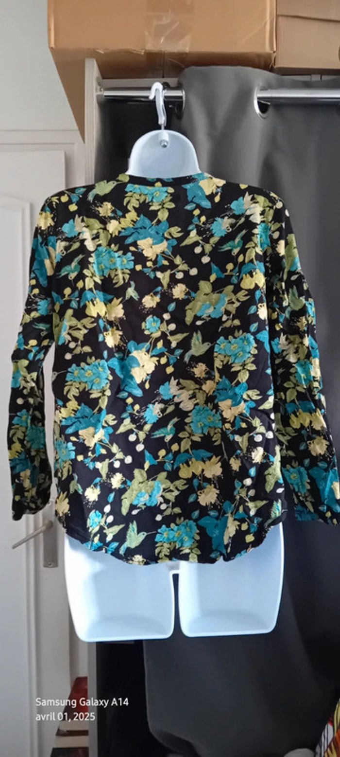 Blouse en viscose motif oiseaux et fleurs noir vert femme S tex - photo numéro 9
