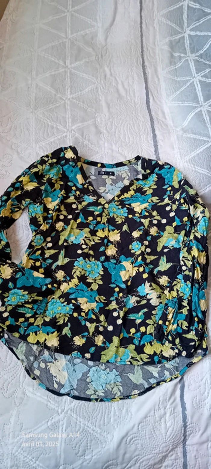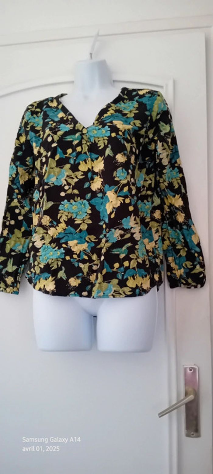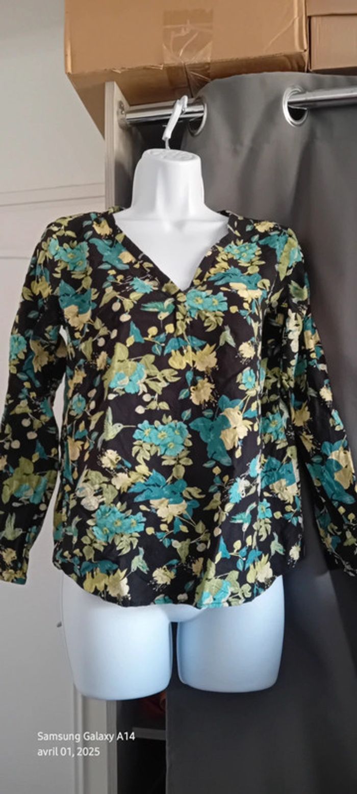 Blouse en viscose motif oiseaux et fleurs noir vert femme S tex - photo numéro 1