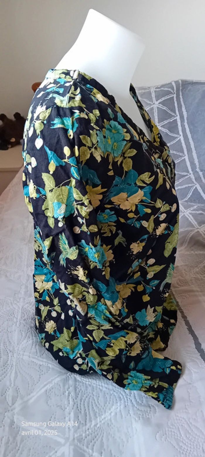Blouse en viscose motif oiseaux et fleurs noir vert femme S tex - photo numéro 8