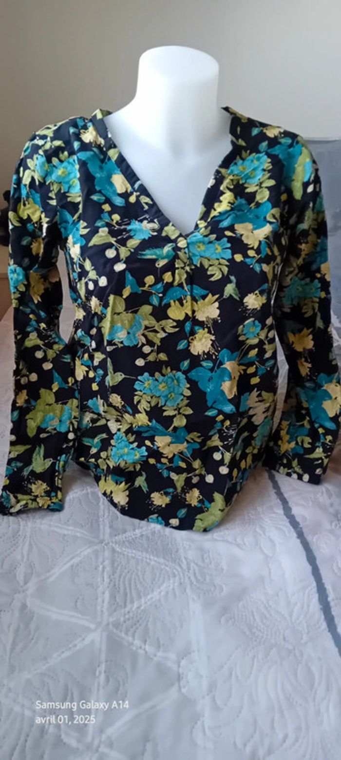 Blouse en viscose motif oiseaux et fleurs noir vert femme S tex - photo numéro 2