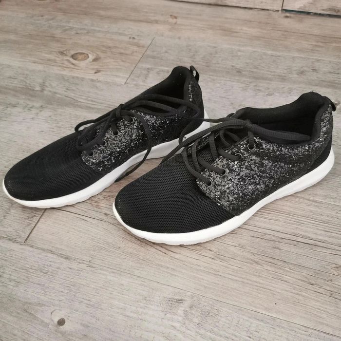 Paire de baskets noir à pailettes à lacets pointure 40 En bon état 👟Pour retrouver mes chaussures #virginwoodychaussures