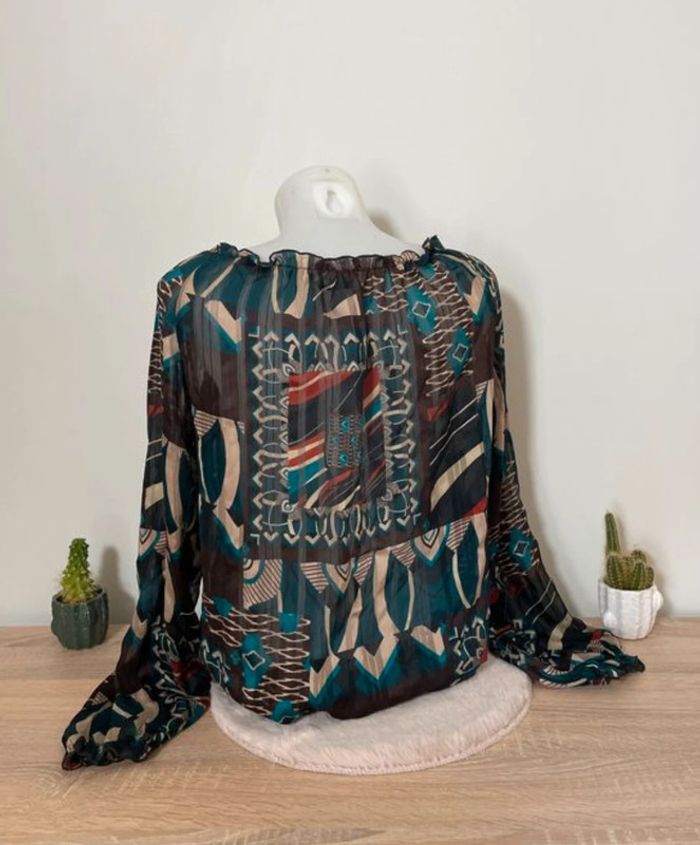 Blouse transparente marron et pétrole Afibel - photo numéro 3