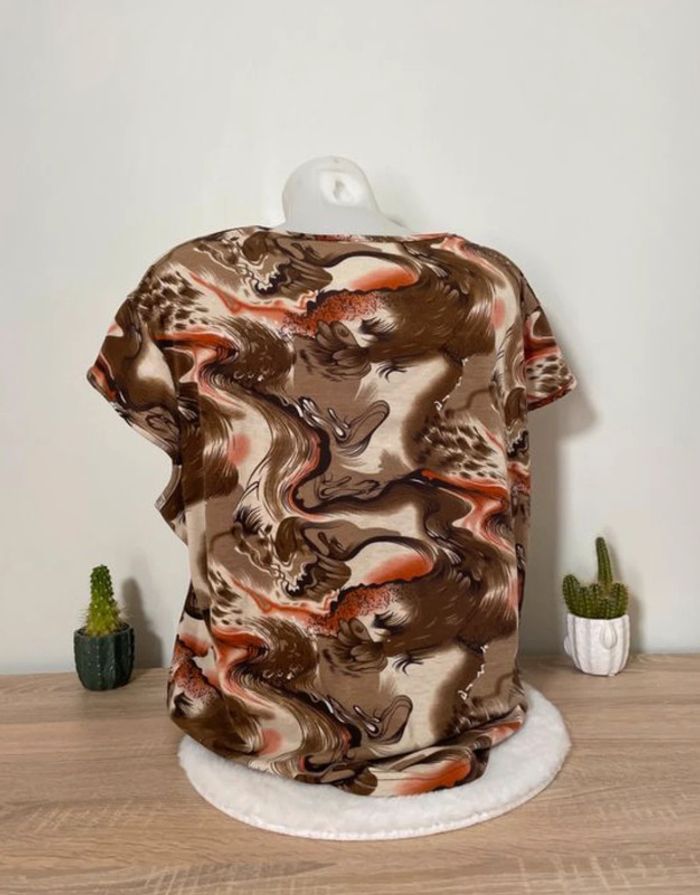 Haut moderne abstrait marron et orange Grande Taille - photo numéro 2
