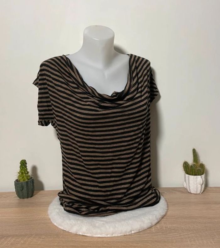Top à rayures noires et dorées pailletées - photo numéro 1