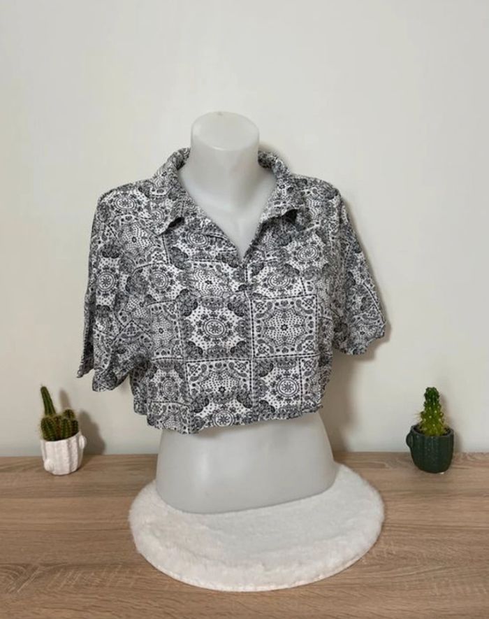 En parfait état 🌟 🌹 Col effet chemise 🍃 Manches courtes 🌺 Motif vintage Longueur : 39cm