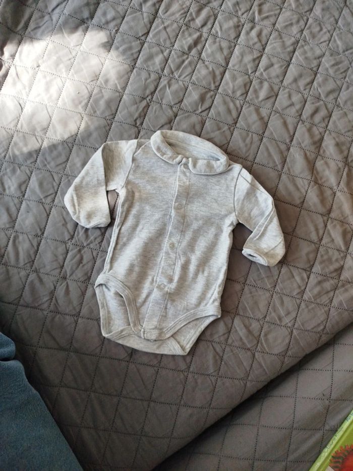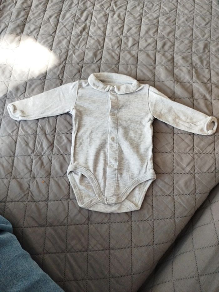 #bodiemanchelongue avec col très classe #petitbateau #mixte #60cm #gris #3mois