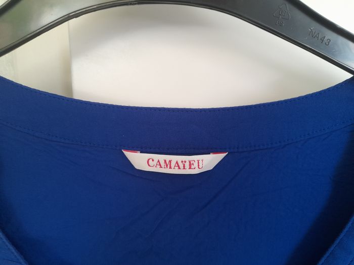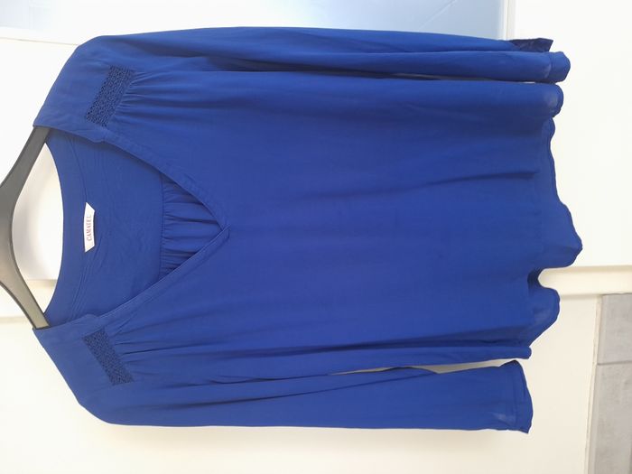 Vends tunique bleu foncé. Petits boutons en bas des manches. Tissu léger et fluide