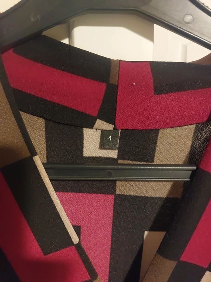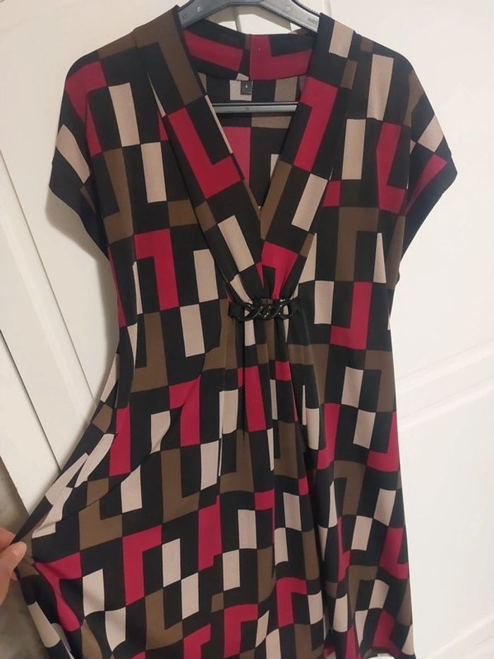 Jamais portée, neuve sans étiquette, robe printemps ou hiver avec gilet et collant opaque. Achetée dans une boutique parisienne, Motif carrés noir, fushia violine et beige Taille 40 à 42 Joli dètail et fronçage sous poitrine.fait un joli décoletté Remise sur lot activée D autres jolies choses dans mon dressing