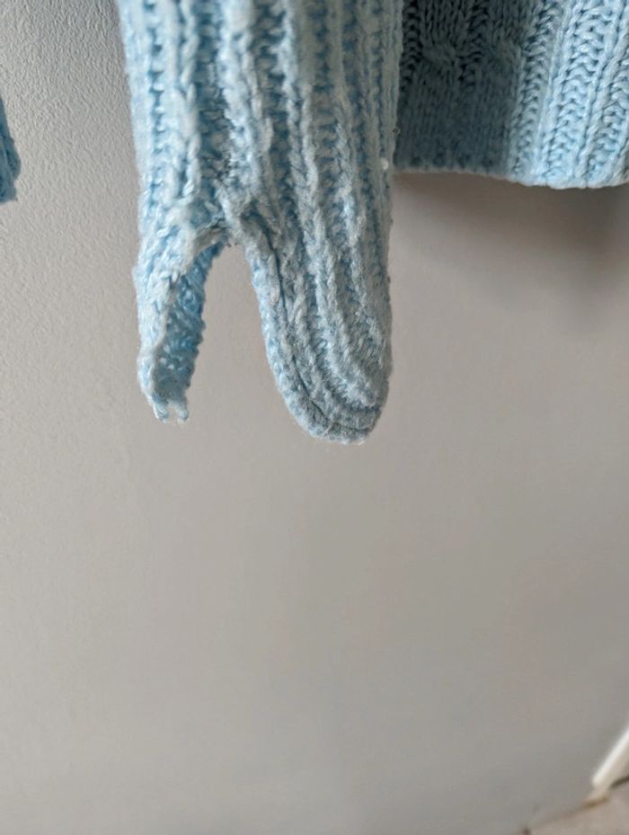 Pull 100 % acrylique idéal pour les soirs d'été Pour la couleur exacte c'est la photos (1). Aisselles 60 cm ne vous fiez pas à la taille L 40 convient jusqu'à la taille 46/48 L60 cm il est un peu plus court devant