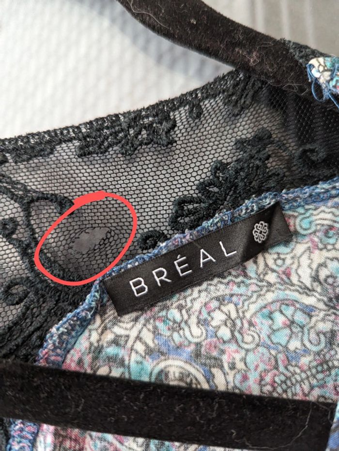 Très jolie portée. Je m'en débarrasse à contrecoeur Un léger accro sur la dentelle au niveau du cou à l'arrière mais ne se voit pas. Je viens seulement de m'en apercevoir L98 cm 100% coton