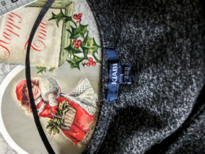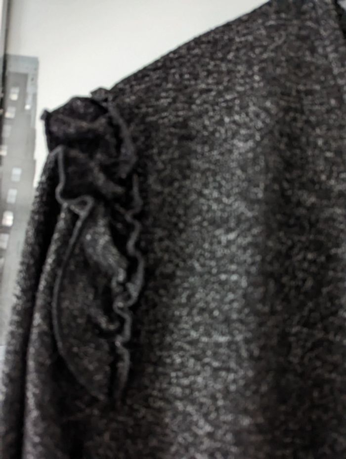 Chaude et extensible Taille L mais va jusqu'à T44 Volantee sur le haut des manches Évasée sur le bas 76 cm Aisselles 50 cm L 95 cm Couleur gris foncé chiné