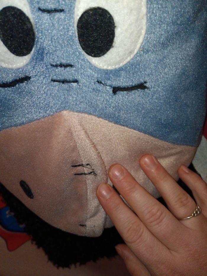 Peluche tête de bourriquet avec poche 40cm env défaut aux coutures pas de vinted go - photo numéro 3