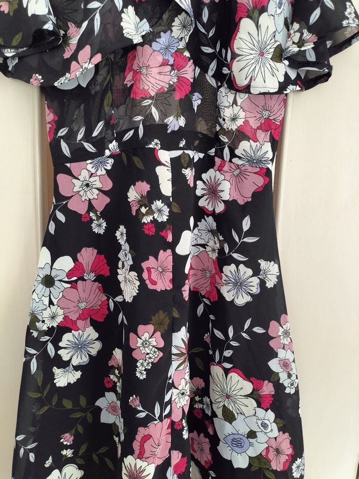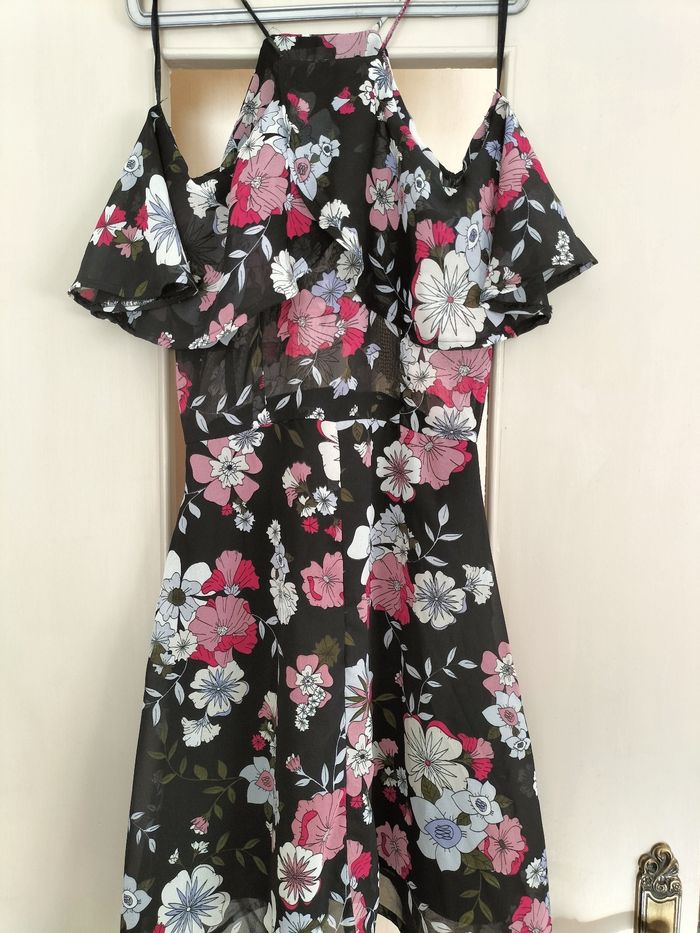 Robe épaules dénudées motif fleurs 100% polyester longueur 89 cm taille S