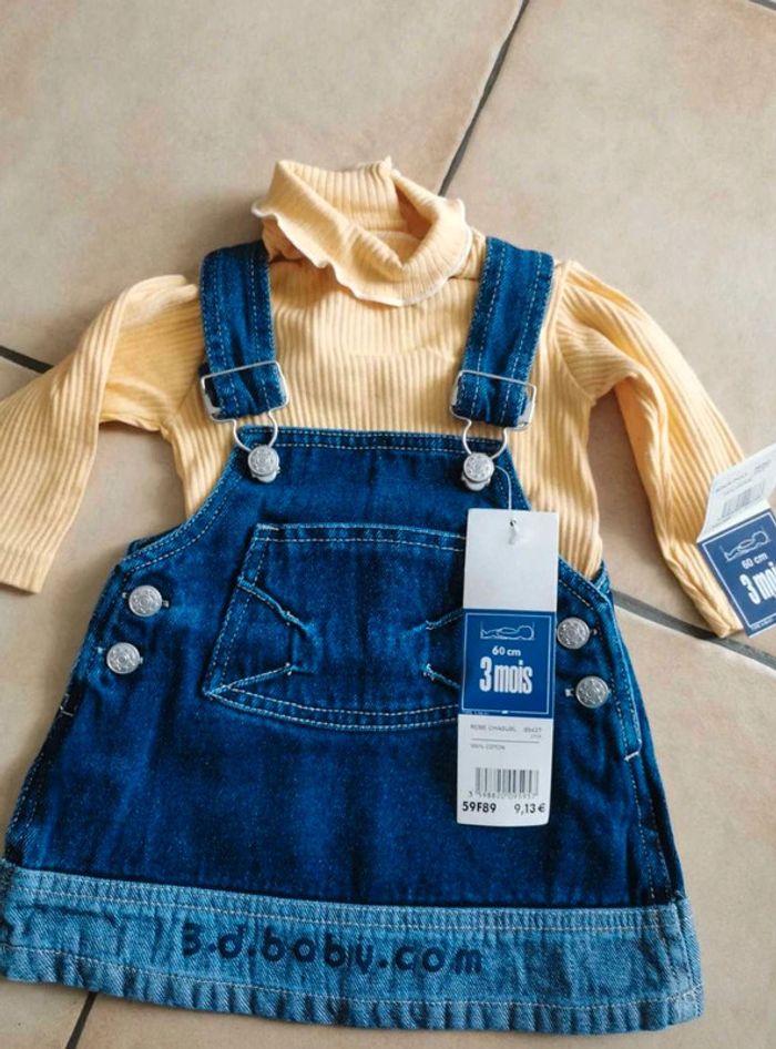 Ensemble fille robe en jean et sous pull côtelé neuf 3 mois