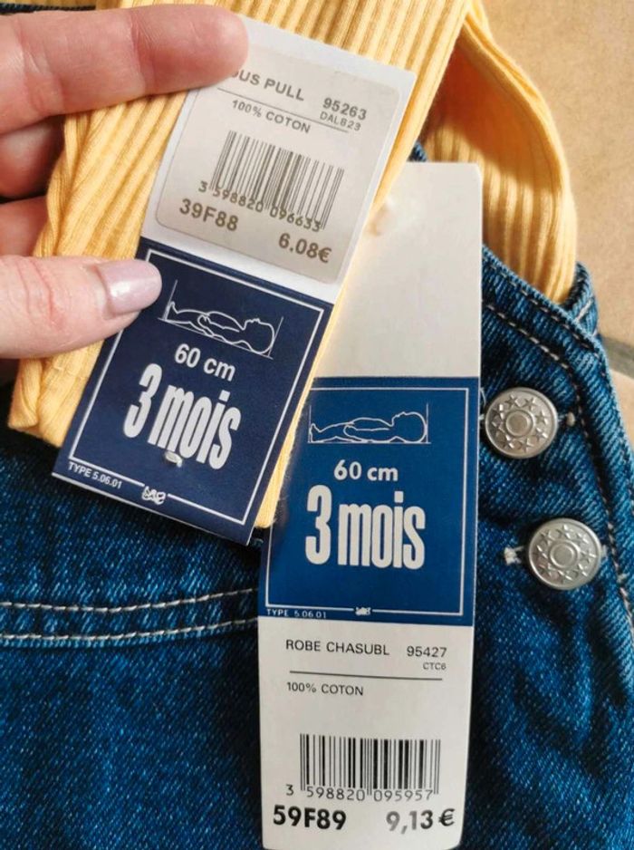 Ensemble  fille  robe en  jean  et  sous pull côtelé neuf  3 mois - photo numéro 3