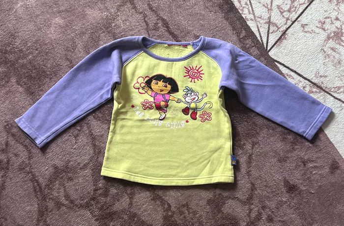 Sweat Dora l'exploratrice et Babouche Taille 4 ans (pas d'étiquette de taille) Coloré 80 % coton 20 % polyester 31 cm de largeur 38 cm de longueur Maison non fumeur et sans animaux 📩Je réponds rapidement aux messages 📦Envoi rapide et soigné